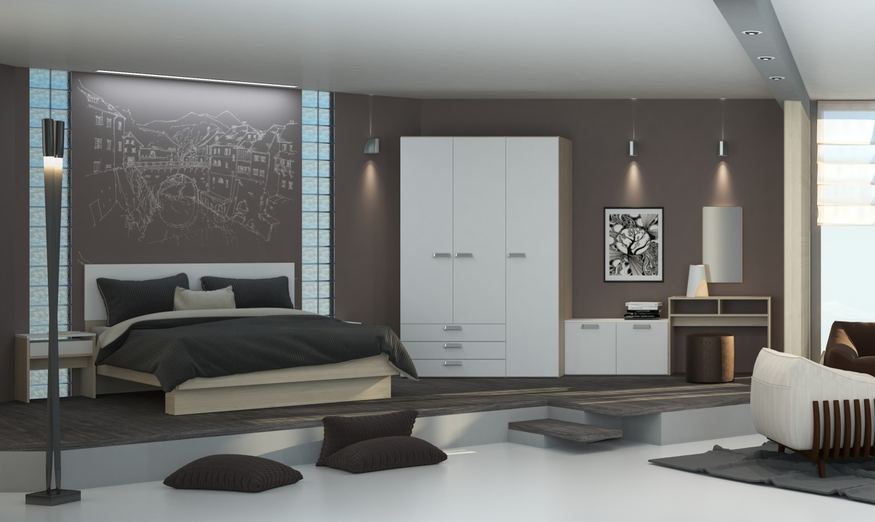 Спална соба Центер. Можност за избор и на други комбинации во завиност од просторот.