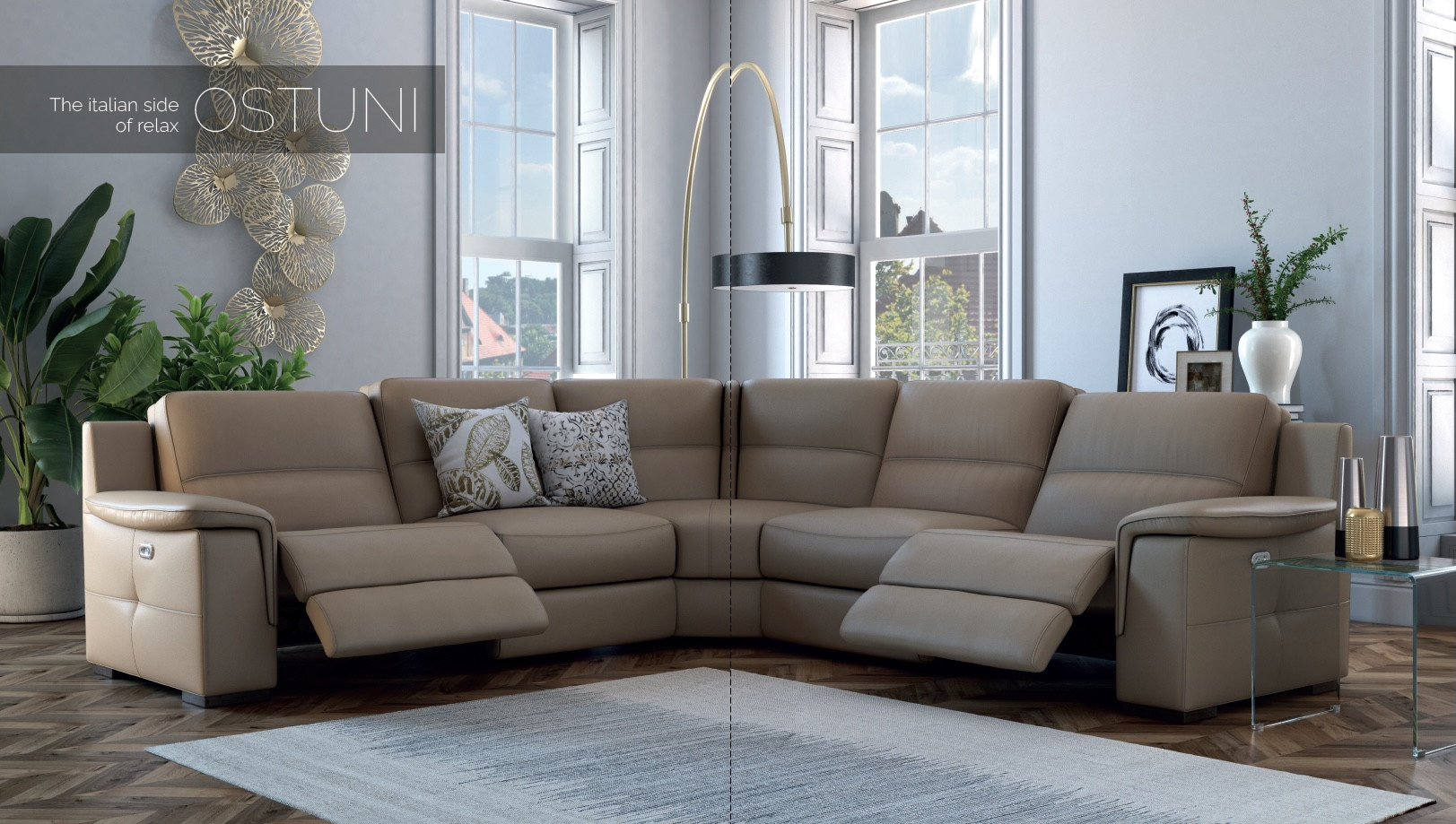 Аголна гарнитура Остуни. Можност и за други комбинации и димензии во зависност од просторот. Можност и за дополнително вградување на електричен релакс механизам.