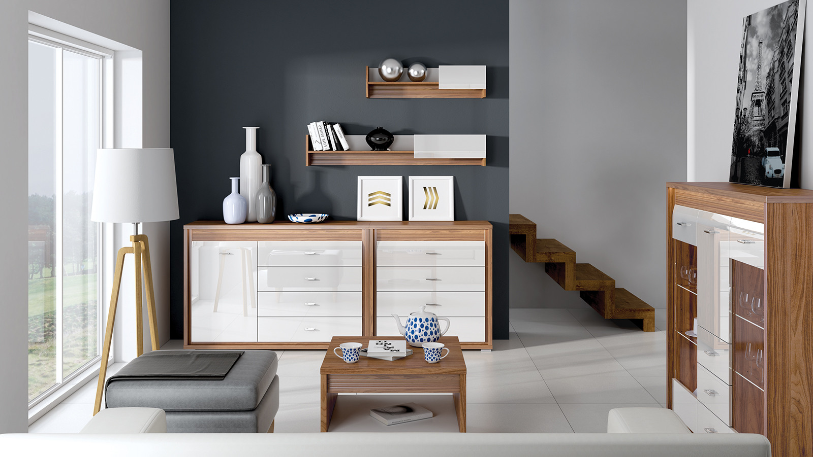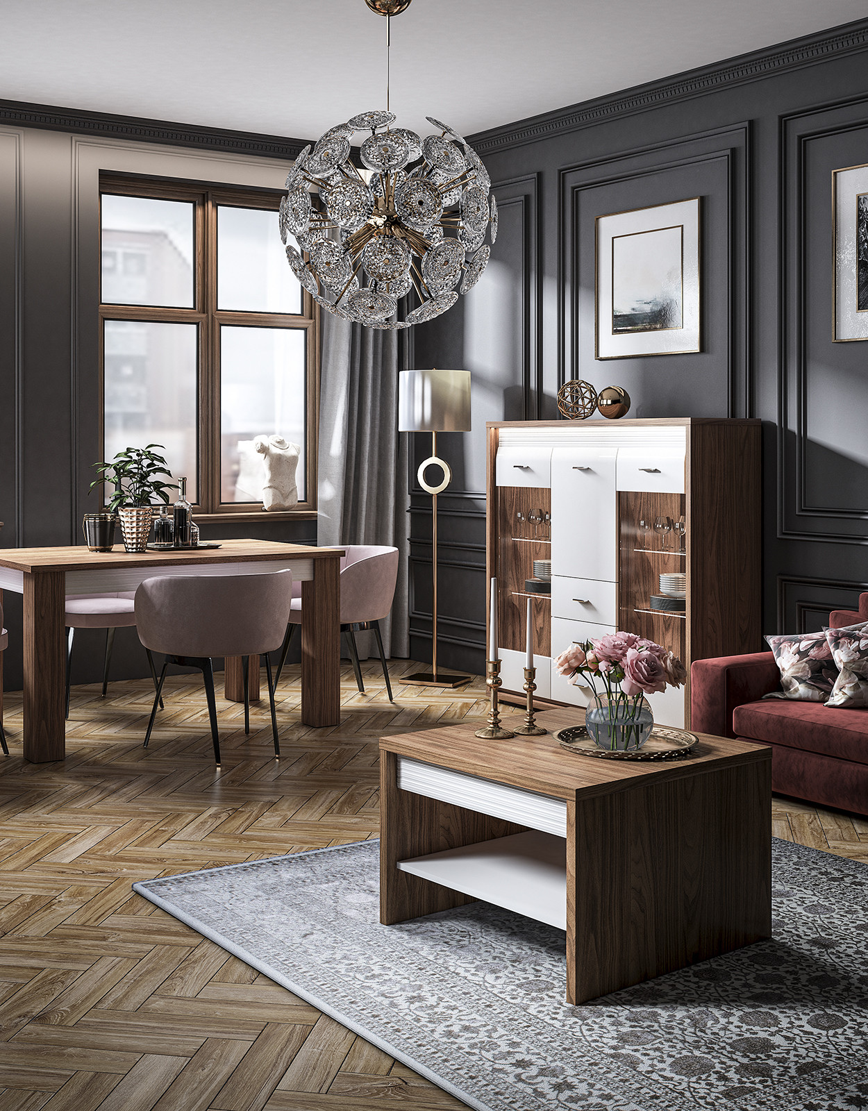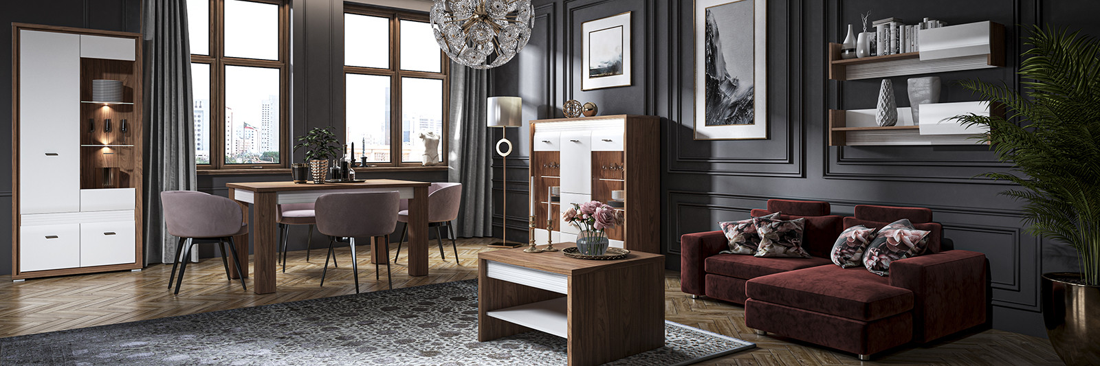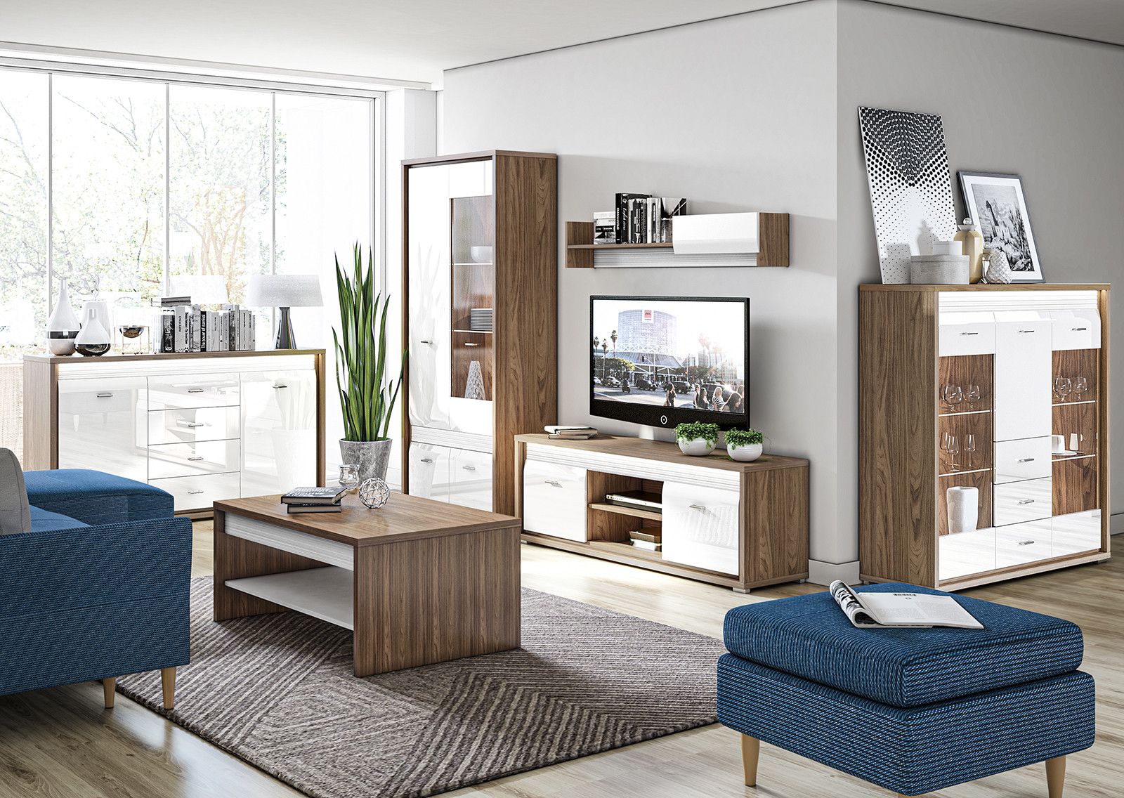 Комплет дневна соба Даллас. Можност и за избор на други комбинации во зависност од просторот.