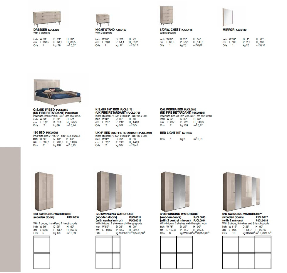 Комплет спална соба Клаир. Можност за избор и на други комбинации во зависност од просторот.